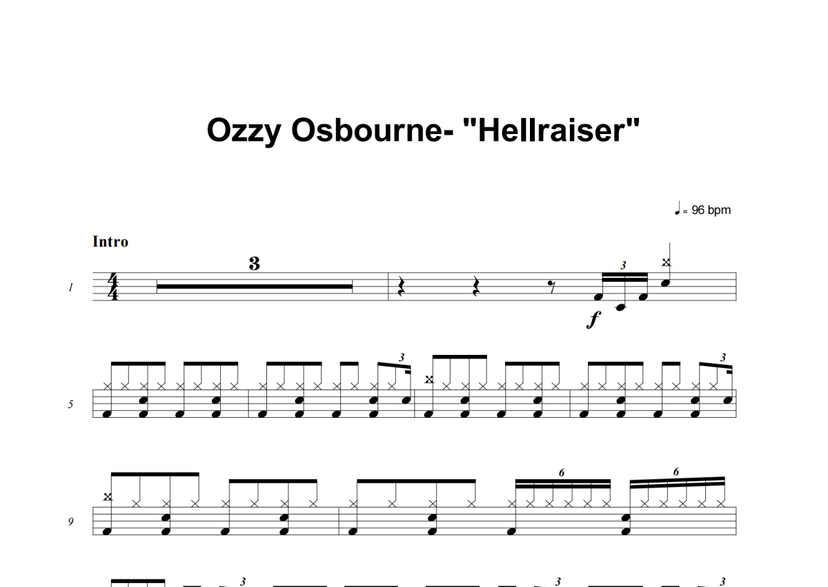 Ozzy Osbourne《Hellraiser》架子鼓谱