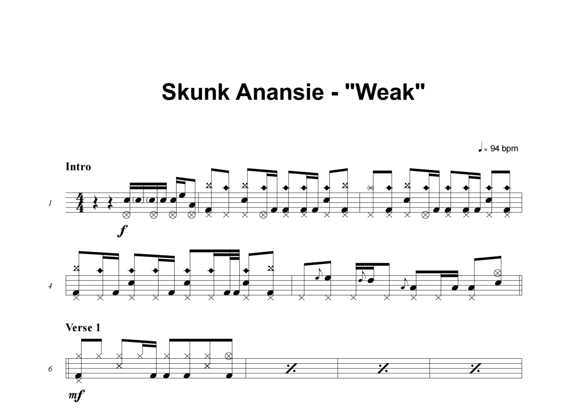Skunk Anansie《Weak》架子鼓谱
