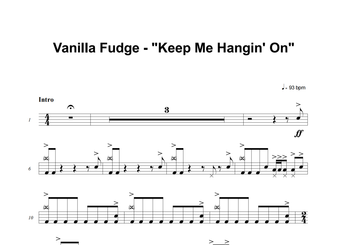 Vanilla Fudge《You Keep Me Hangin' On》架子鼓谱