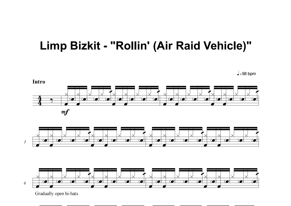 Limp Bizkit《Rollin' (Air Raid Vehicle)》架子鼓谱