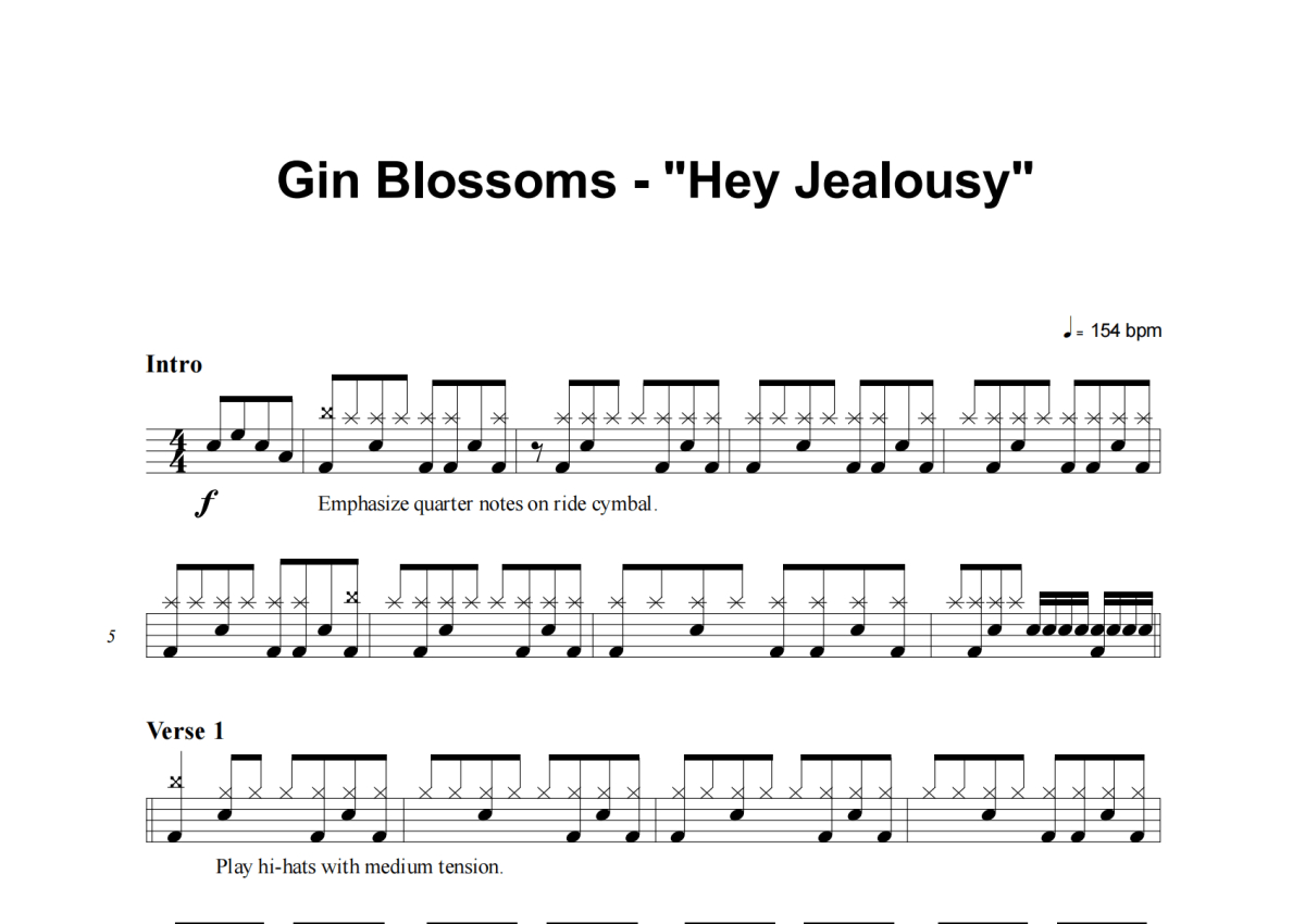 Gin Blossoms《Hey Jealousy》架子鼓谱