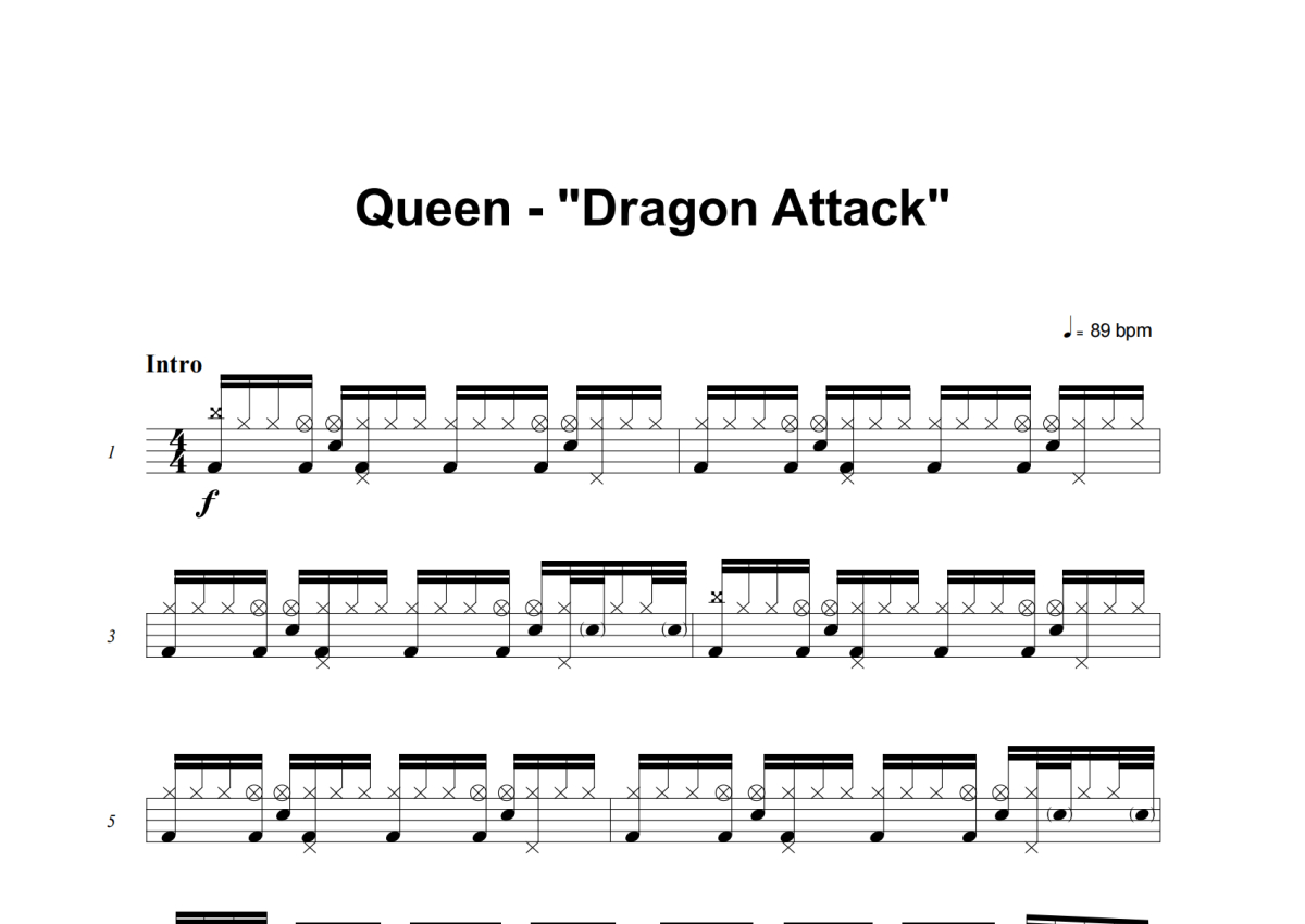 Queen《Dragon Attack》架子鼓谱