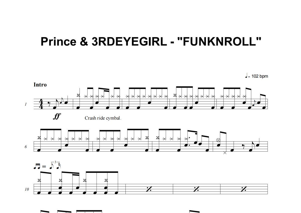 Prince & 3RDEYEGIRL《FUNKNROLL》架子鼓谱