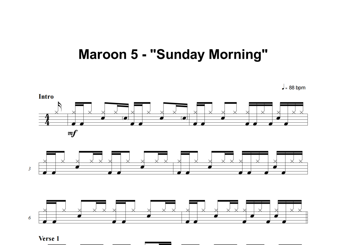 Maroon 5《Sunday Morning》架子鼓谱