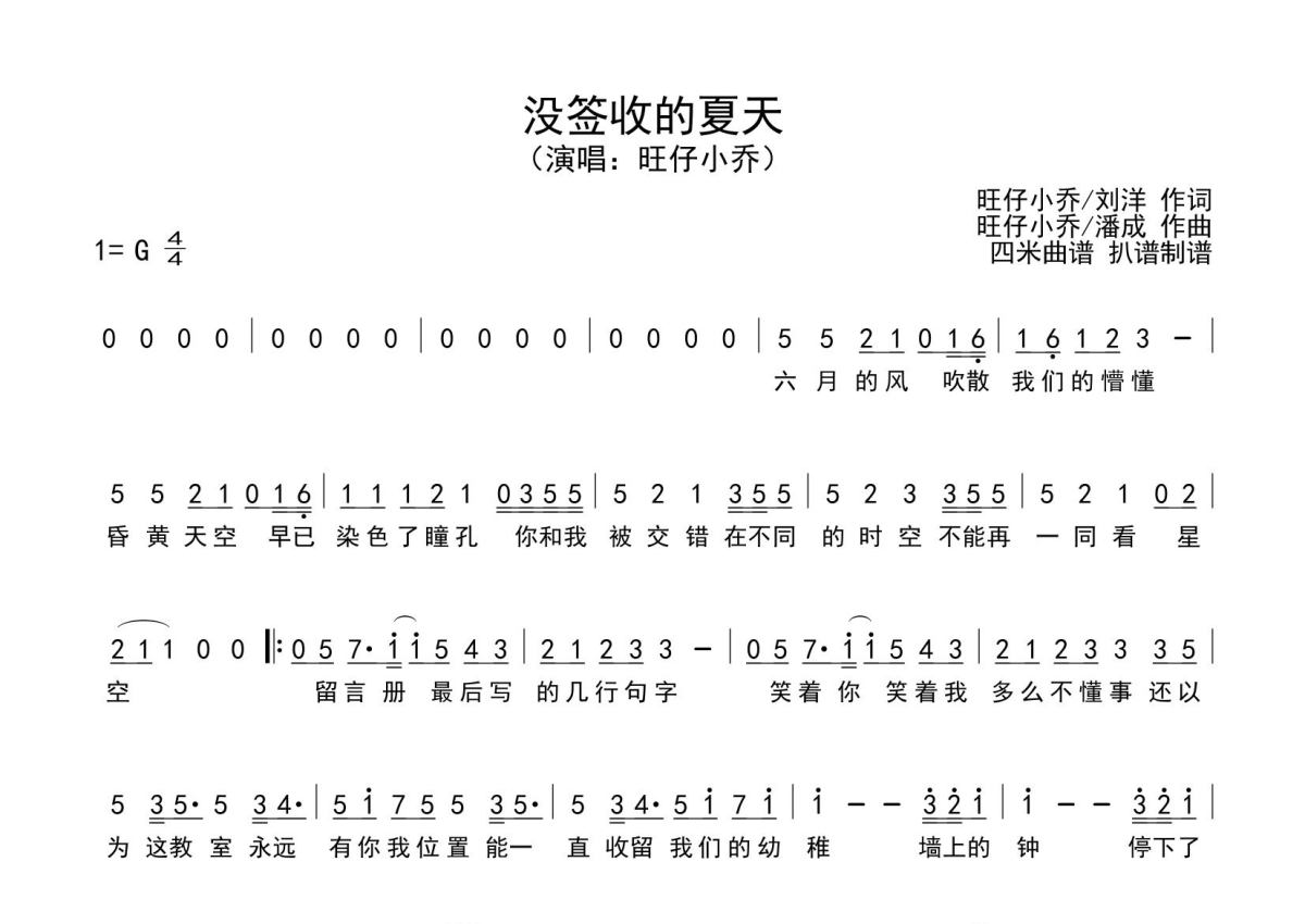 《没签收的夏天》简谱 - 旺仔小乔