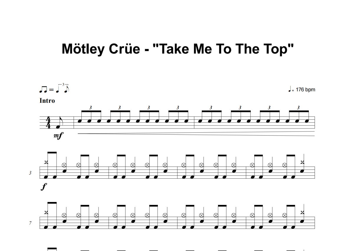 Motley Crue《Take Me To The Top》架子鼓谱