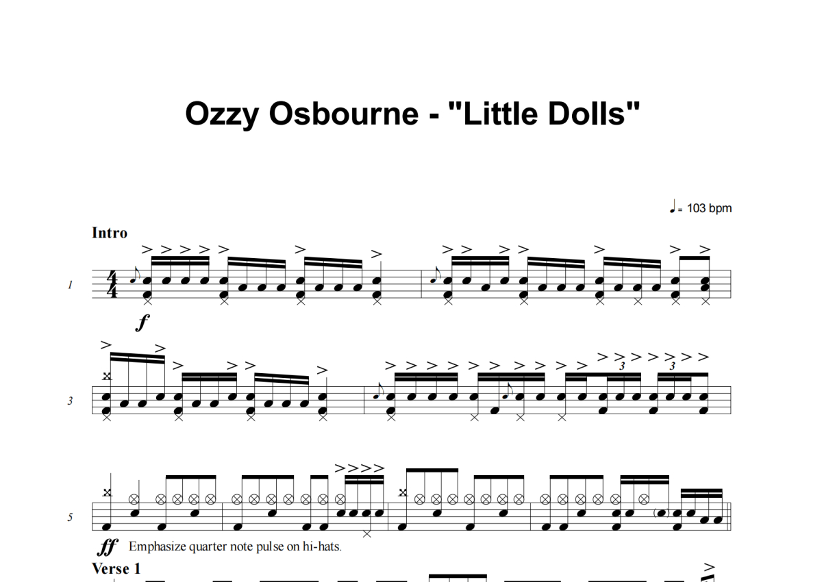 Ozzy Osbourne《Little Dolls》架子鼓谱