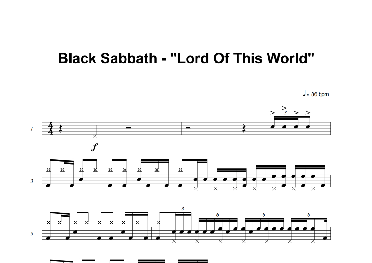 《Lord Of This World》是Black Sabbath演唱的一首歌曲,这份架子鼓谱共有六张高清图谱,图谱由 @失眠的土豆 编配上传,图谱使用五线谱编配,使用这份Lord Of This World架子鼓谱,你将能够轻松地敲打出这首Black Sabbath的Lord Of This World,快来尝试吧。