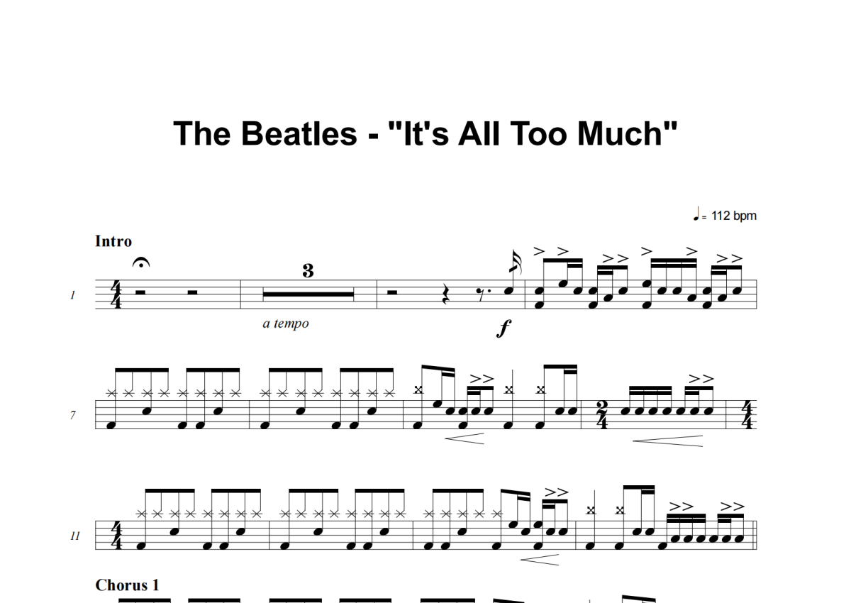 The Beatles《It's All Too Much》架子鼓谱