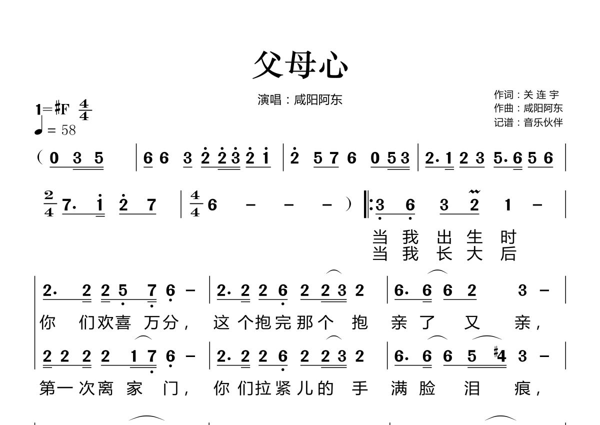 父母心简谱 - 咸阳阿东演唱