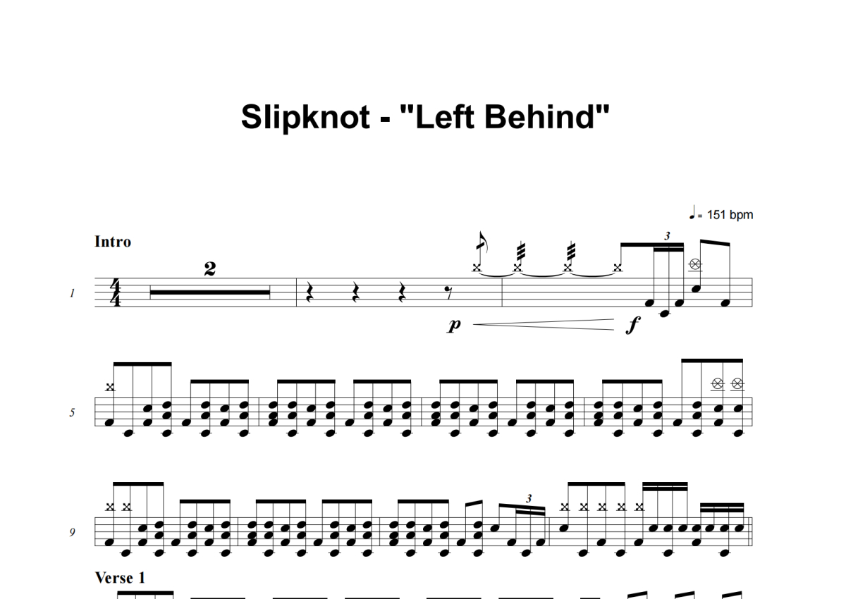 Slipknot《Left Behind》架子鼓谱