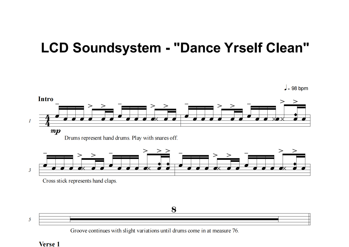 LCD Soundsystem《Dance Yrself Clean》架子鼓谱