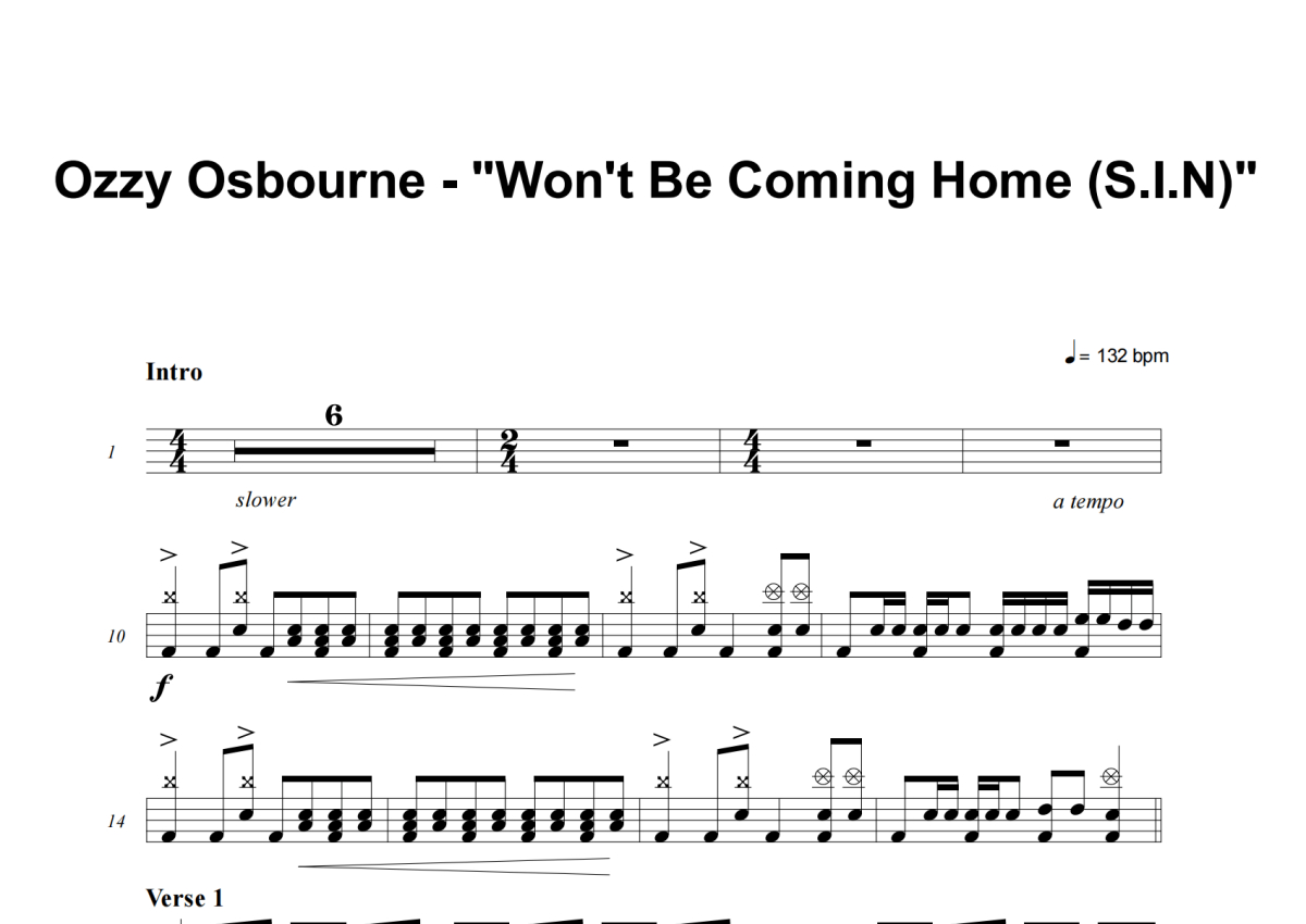Ozzy Osbourne《Won't Be Coming Home (S.I.N.)》架子鼓谱