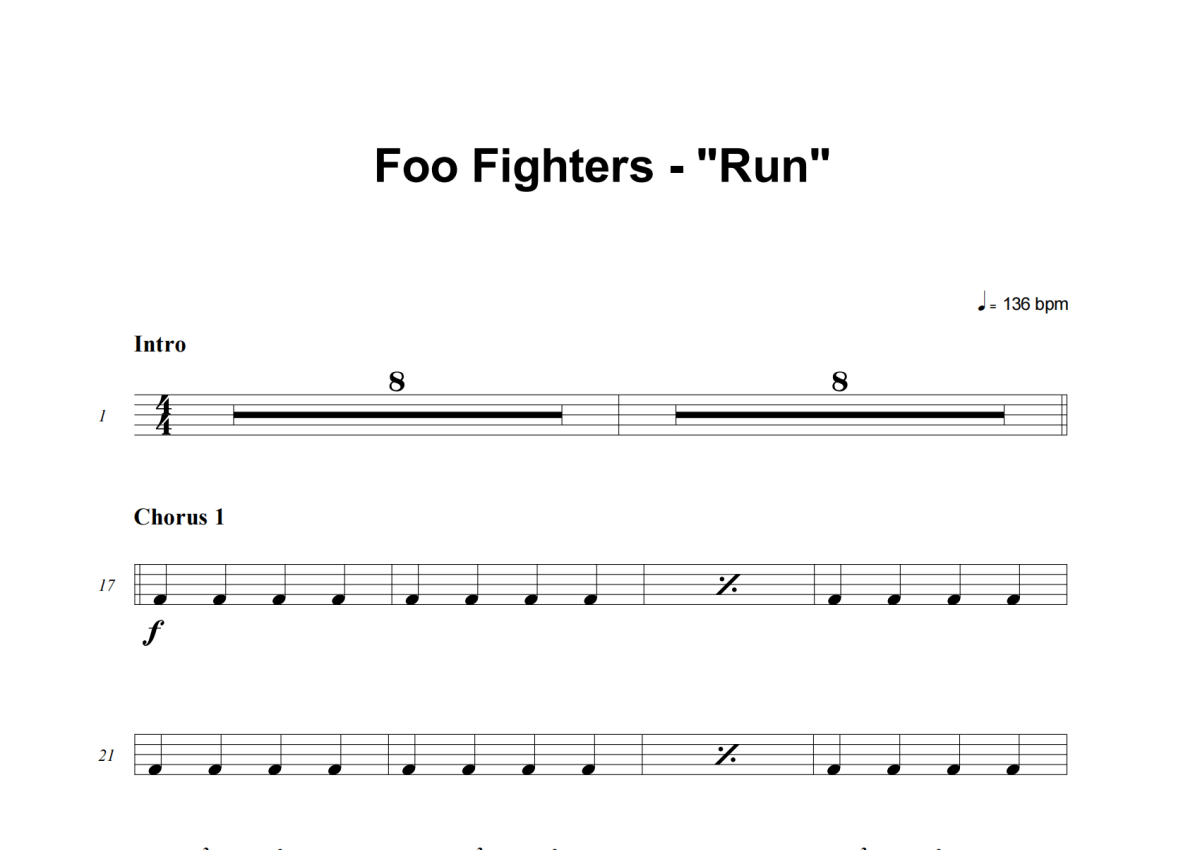 Foo Fighters《Run》架子鼓谱