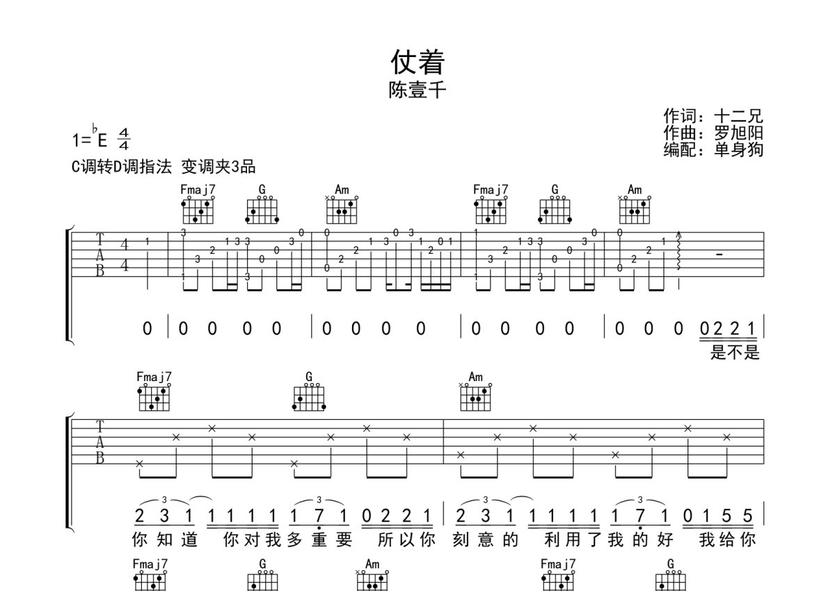陈壹千《仗着》吉他谱 - C调弹唱六线谱
