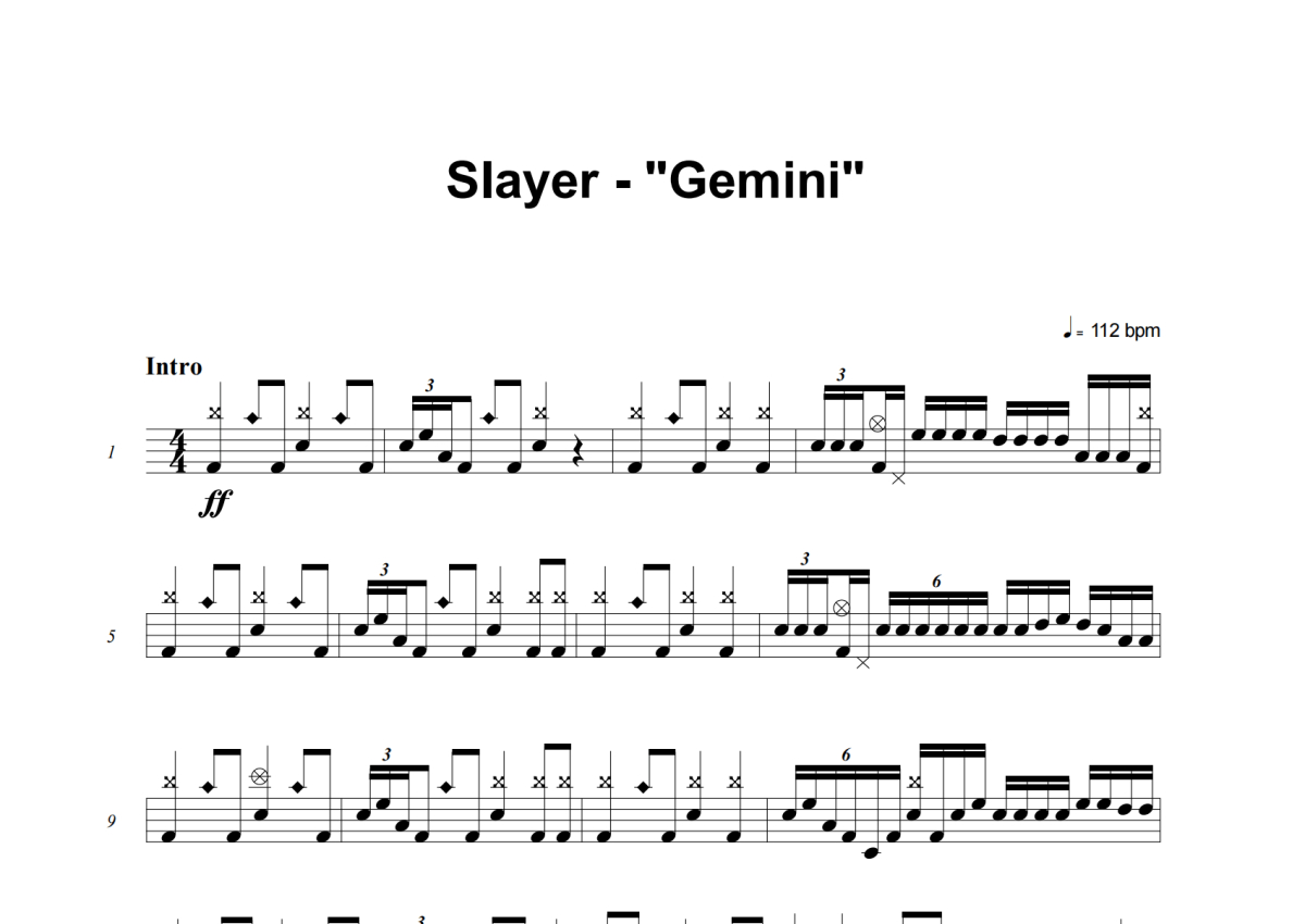 Slayer《Gemini》架子鼓谱