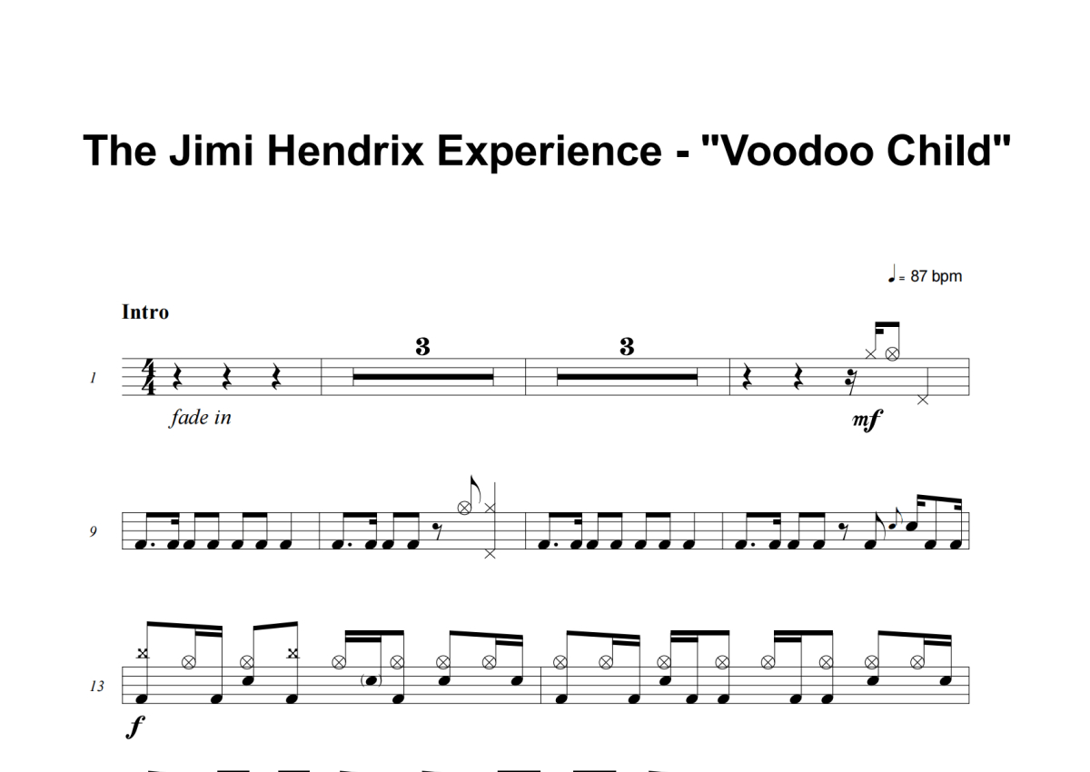 The Jimi Hendrix Experience《Voodoo Child》架子鼓谱