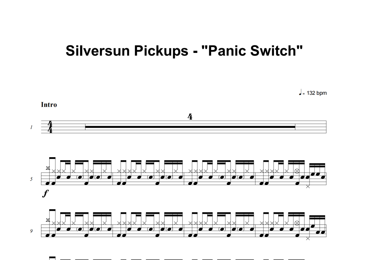 《Panic Switch》是Silversun Pickups演唱的一首歌曲,这份架子鼓谱共有六张高清图谱,图谱由 @老虎不说谎 编配上传,图谱使用五线谱编配,使用这份Panic Switch架子鼓谱,你将能够轻松地敲打出这首Silversun Pickups的Panic Switch,快来尝试吧。