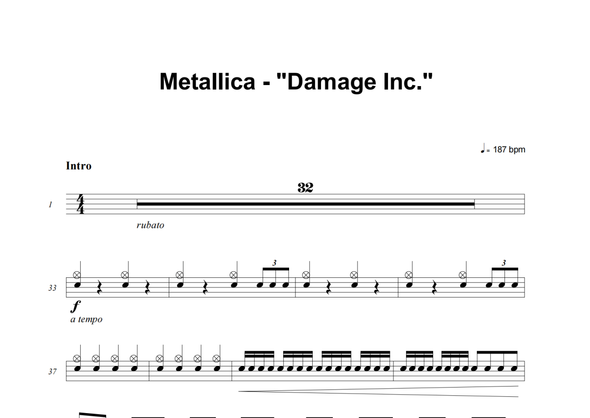 Metallica《Damage, Inc.》架子鼓谱