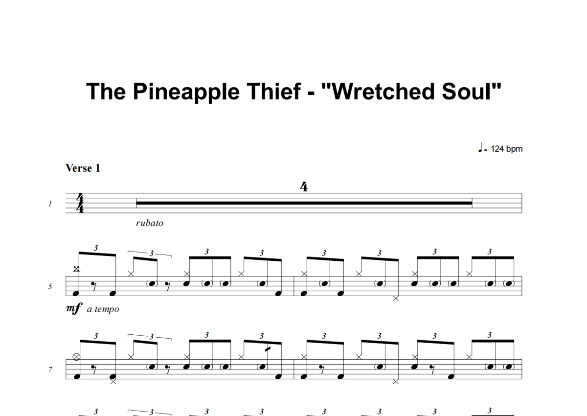 The Pineapple Thief《Wretched Soul》架子鼓谱