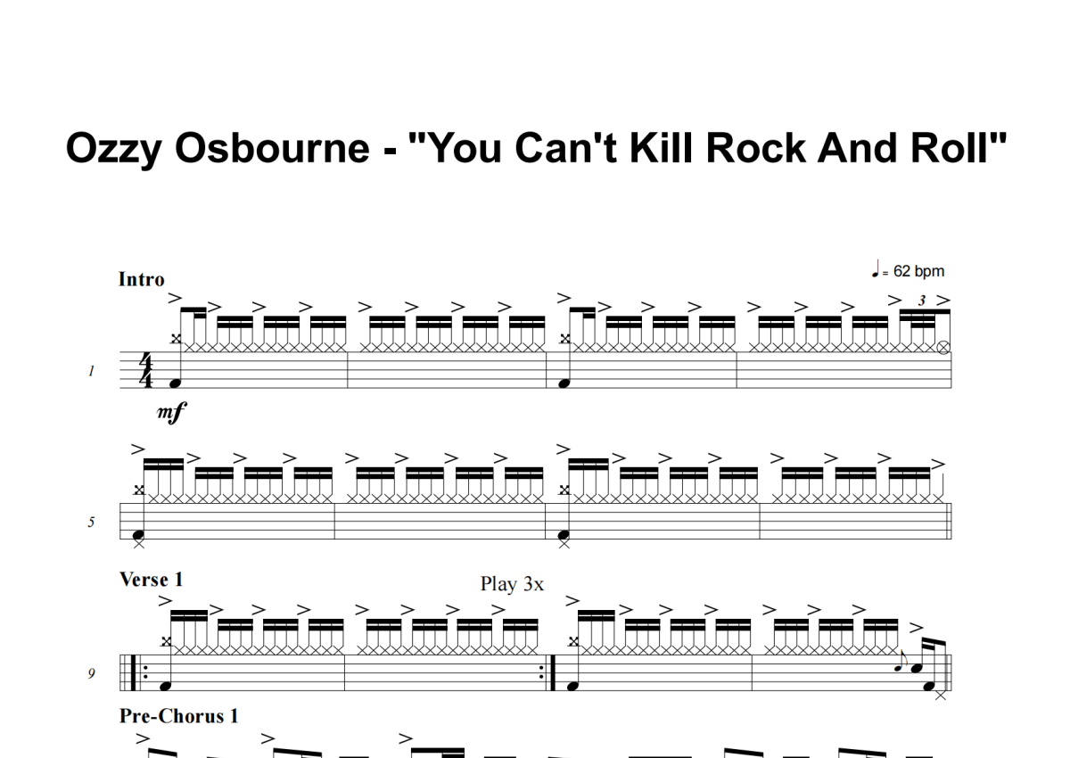 Ozzy Osbourne《You Can't Kill Rock And Roll》架子鼓谱