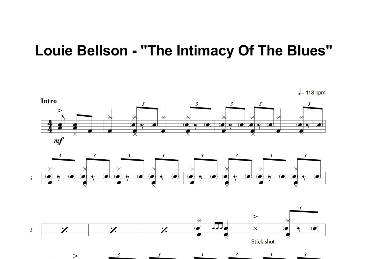 《The Intimacy Of The Blues》是Louie Bellson演唱的一首歌曲,这份架子鼓谱共有十张高清图谱,图谱由 @老虎不说谎 编配上传,图谱使用五线谱编配,使用这份The Intimacy Of The Blues架子鼓谱,你将能够轻松地敲打出这首Louie Bellson的The Intimacy Of The Blues,快来尝试吧。