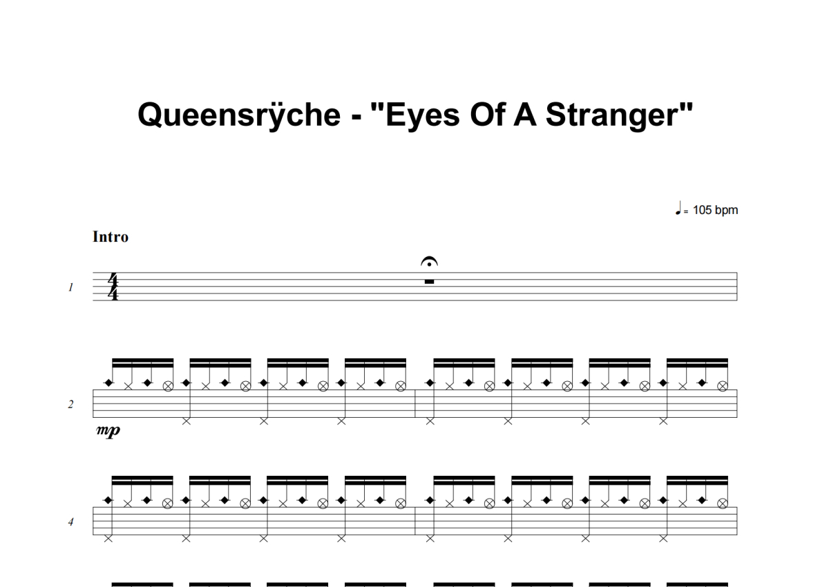 Queensryche《Eyes Of A Stranger》架子鼓谱