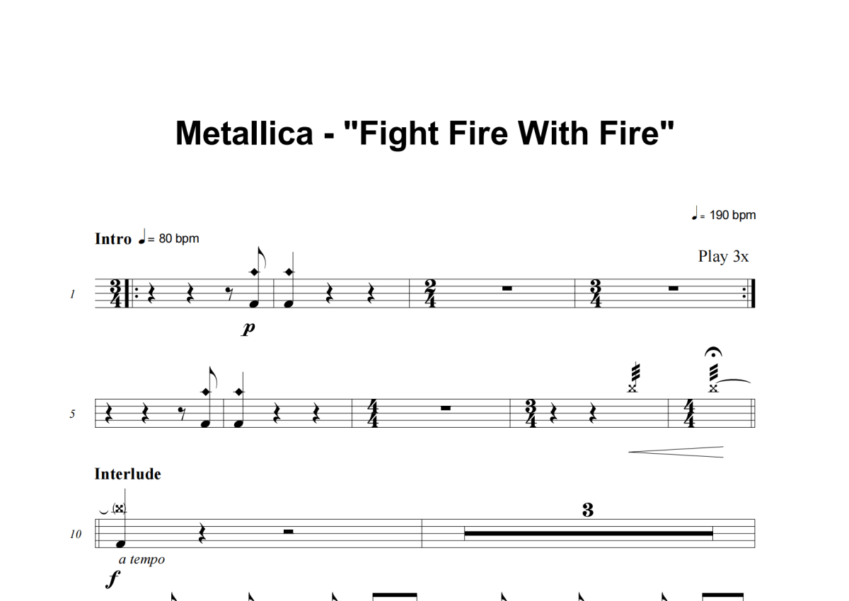 Metallica《Fight Fire With Fire》架子鼓谱