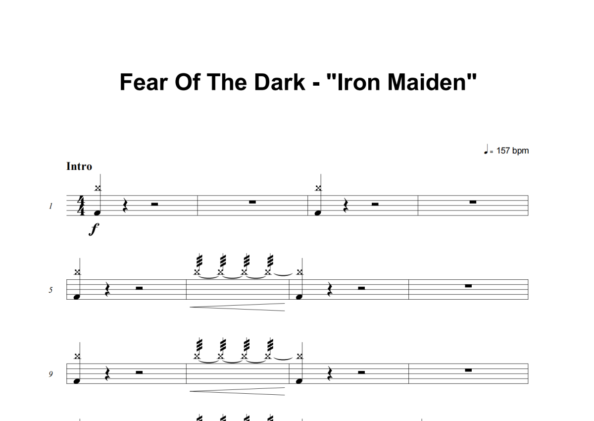 Iron Maiden《Fear Of The Dark》架子鼓谱