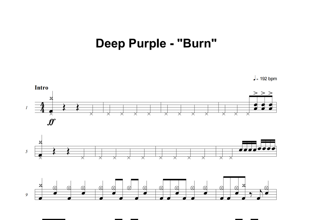 Deep Purple《Burn》架子鼓谱