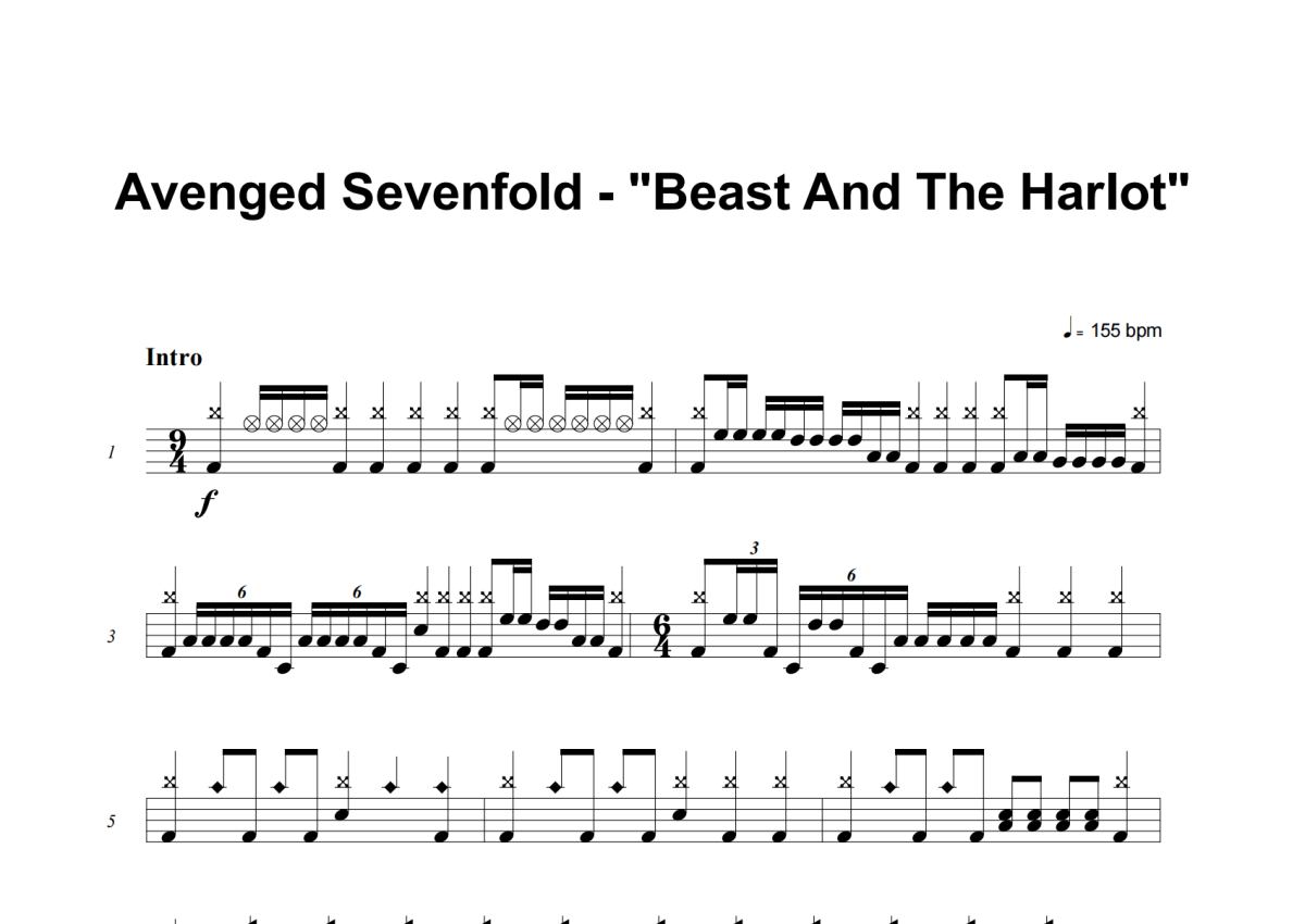 Avenged Sevenfold《Beast And The Harlot》架子鼓谱