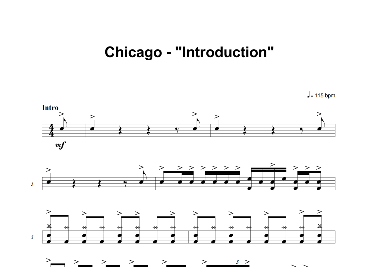 Chicago《Introduction》架子鼓谱