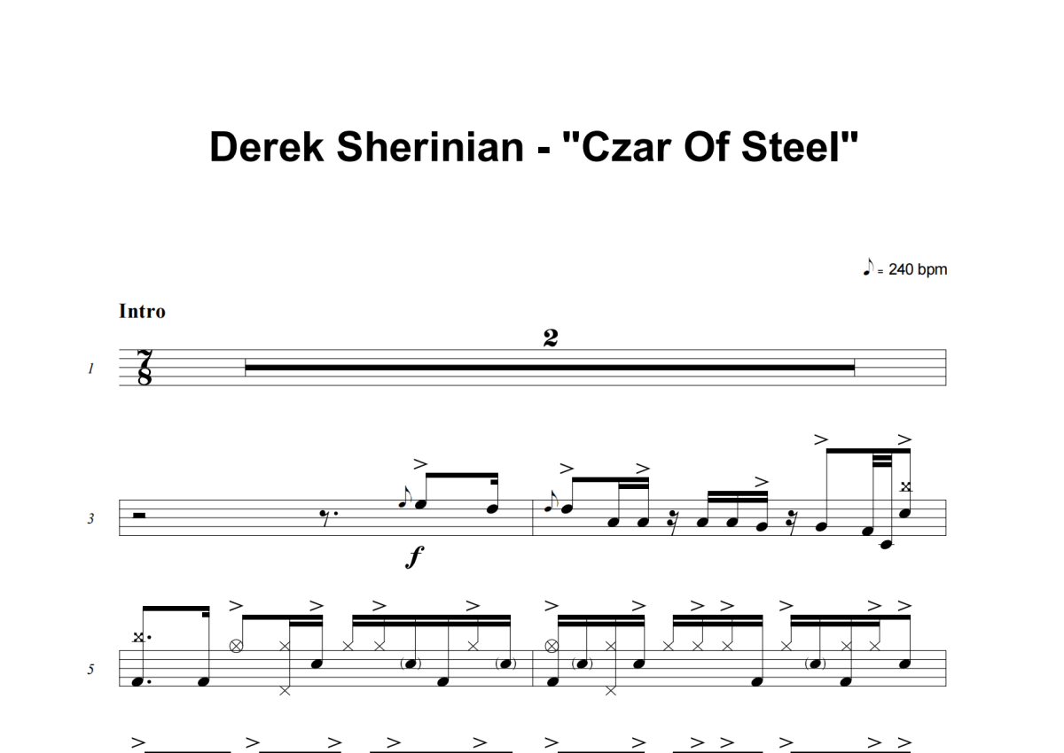 《Czar Of Steel》是Derek Sherinian演唱的一首歌曲,这份架子鼓谱共有十三张高清图谱,图谱由 @积极处世 编配上传,图谱使用五线谱编配,使用这份Czar Of Steel架子鼓谱,你将能够轻松地敲打出这首Derek Sherinian的Czar Of Steel,快来尝试吧。