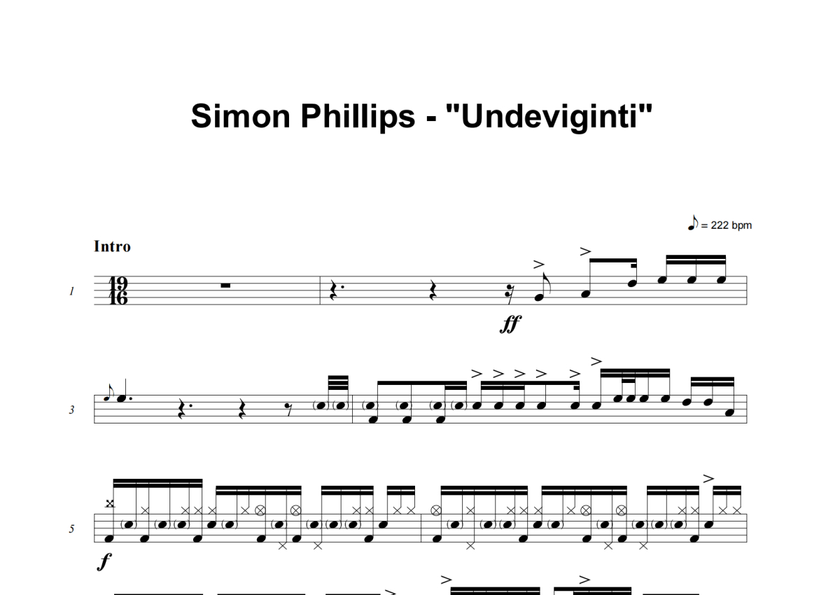 《Undeviginti》是Simon Phillips演唱的一首歌曲,这份架子鼓谱共有十张高清图谱,图谱由 @积极处世 编配上传,图谱使用五线谱编配,使用这份Undeviginti架子鼓谱,你将能够轻松地敲打出这首Simon Phillips的Undeviginti,快来尝试吧。
