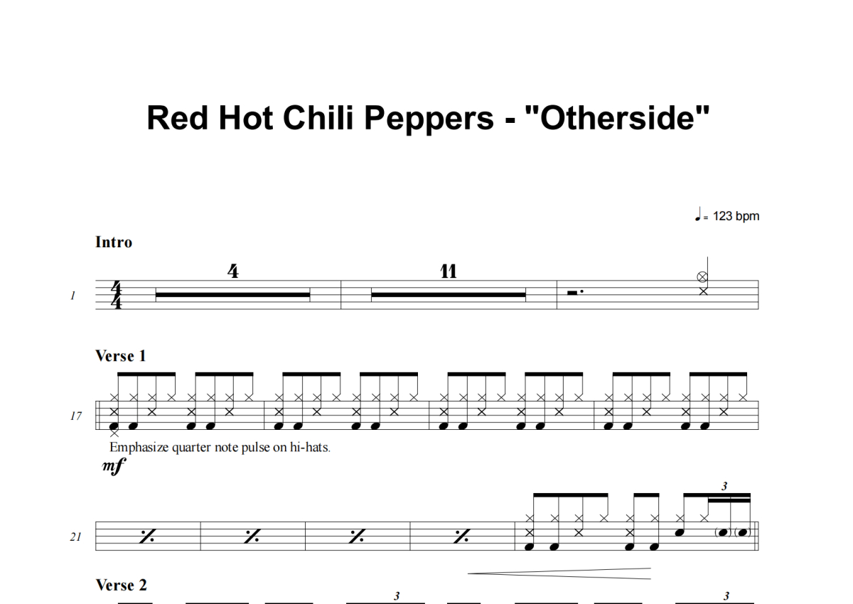 Red Hot Chili Peppers《Otherside》架子鼓谱
