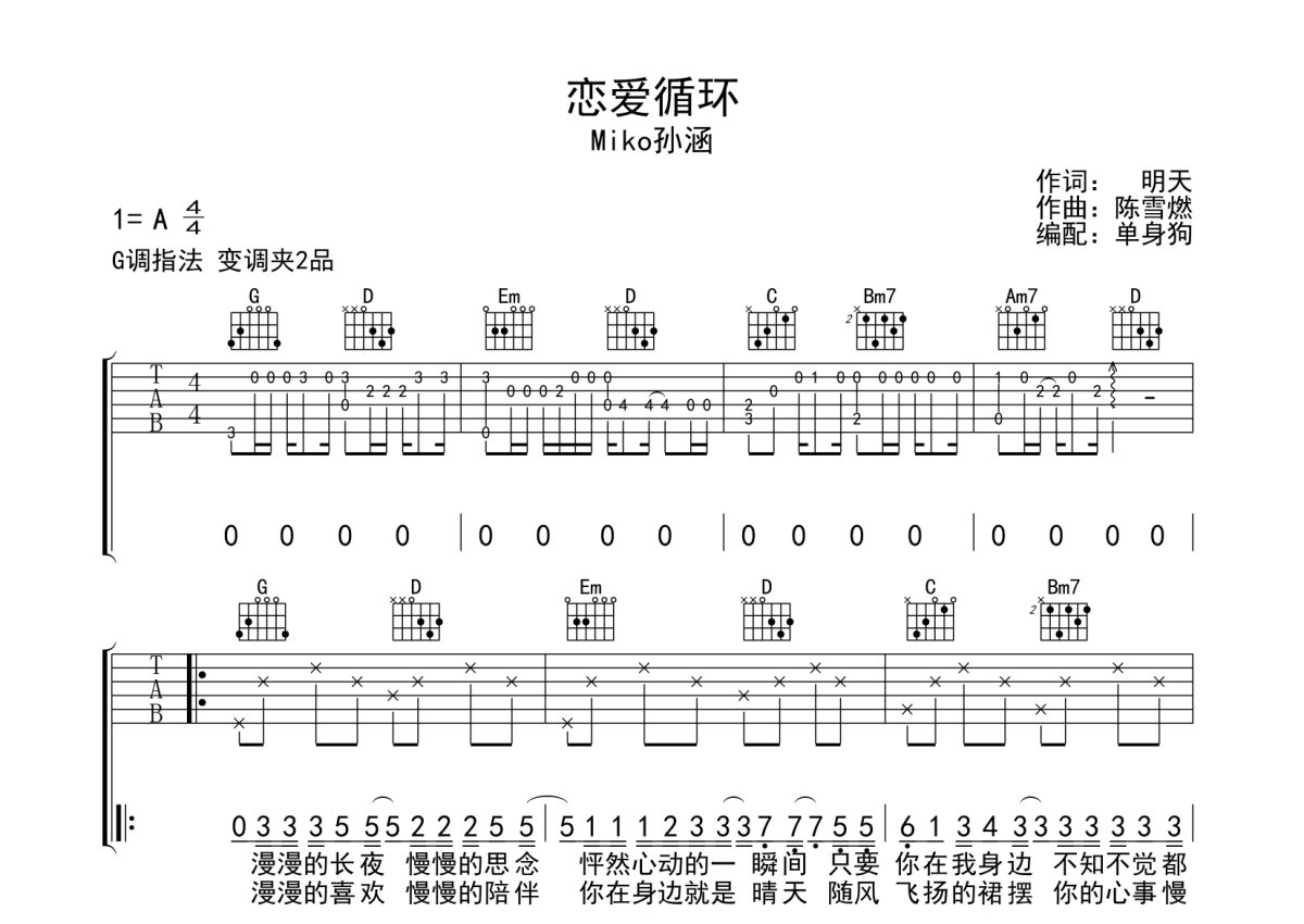 Miko孙涵《恋爱循环》吉他谱 - G调弹唱六线谱