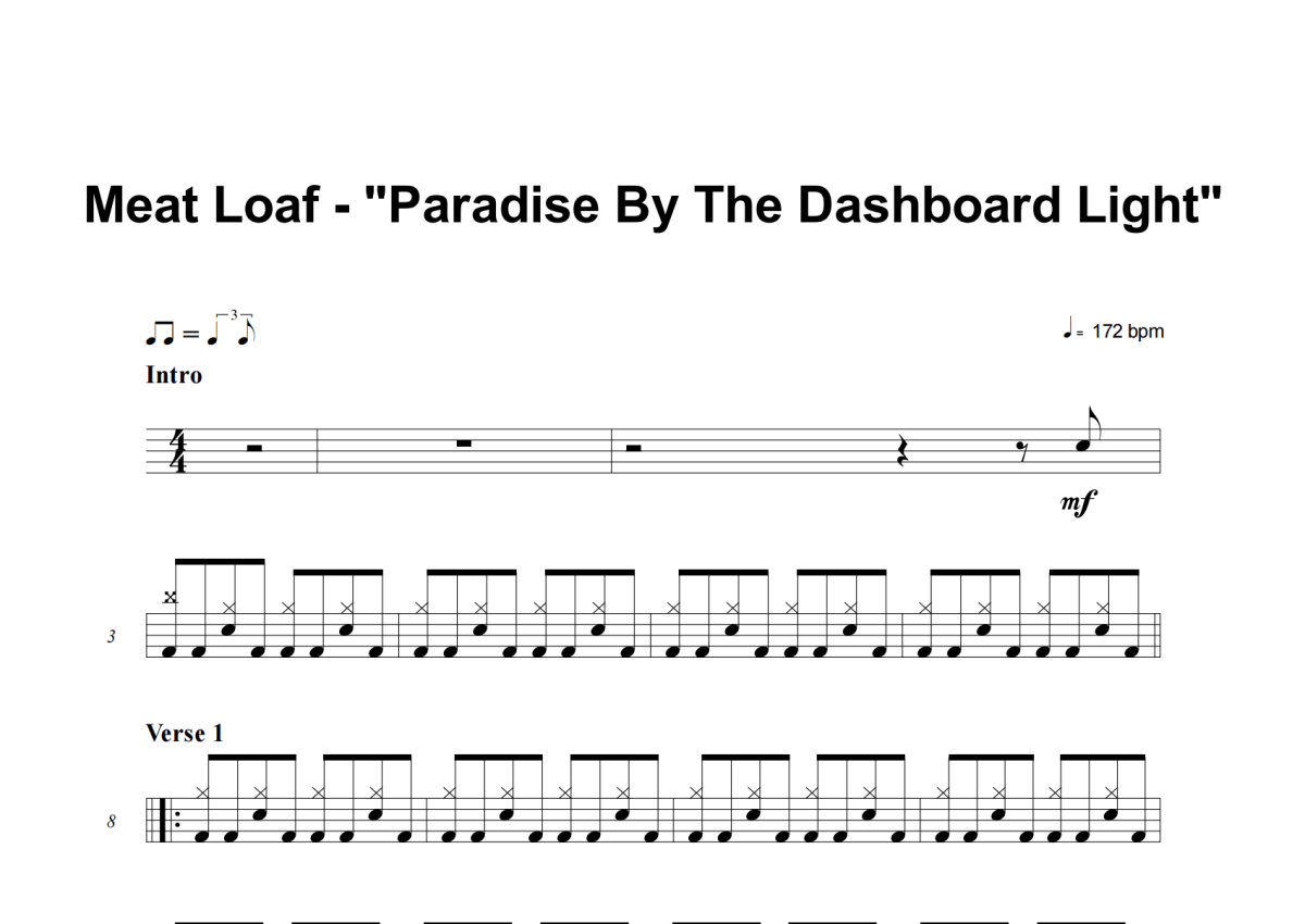 Meat Loaf《Paradise By The Dashboard Light》架子鼓谱