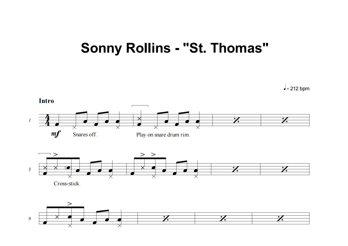 Sonny Rollins《St. Thomas》架子鼓谱