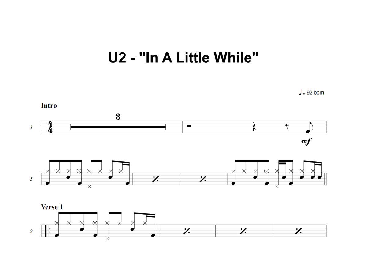 U2《In A Little While》架子鼓谱