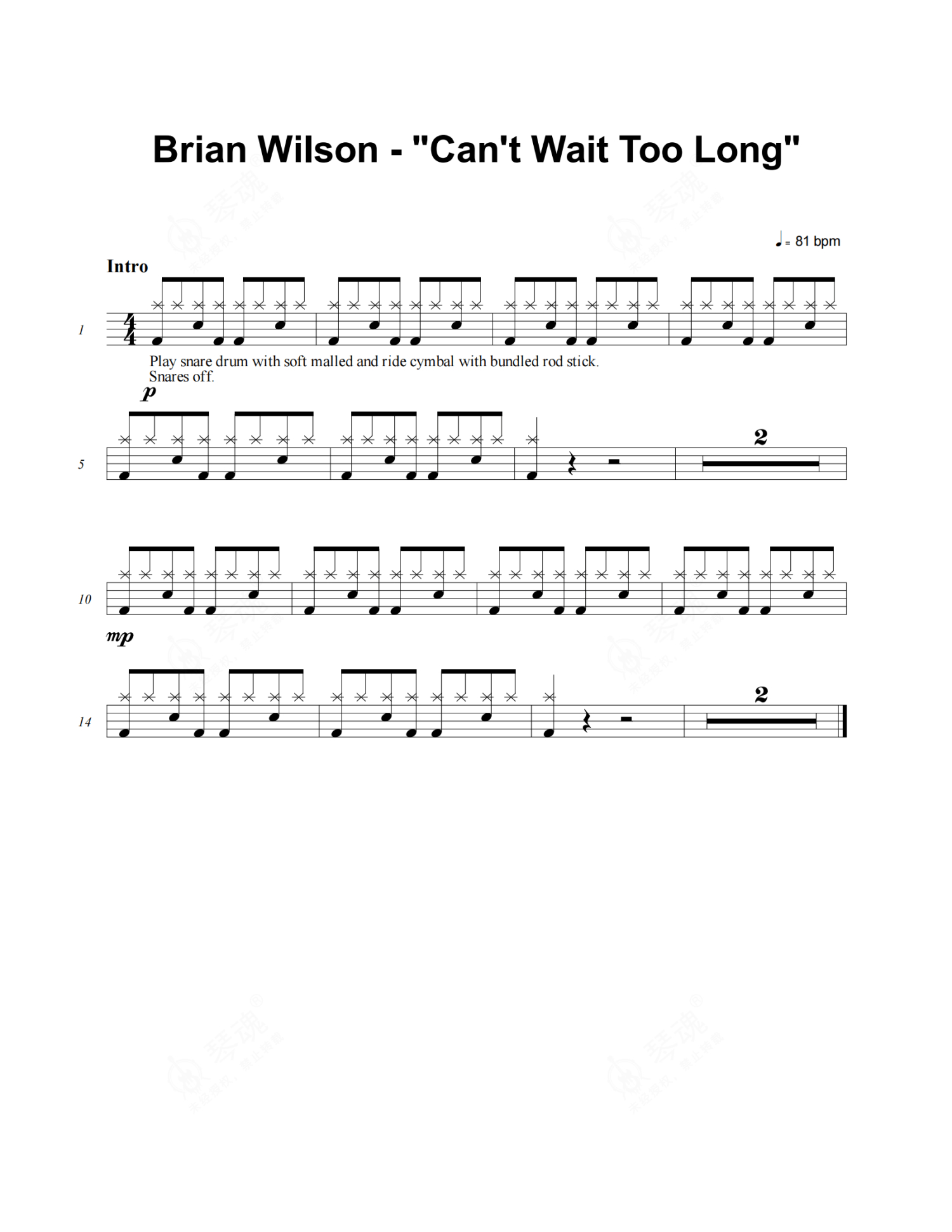Brian Wilson《Can't Wait Too Long》架子鼓谱