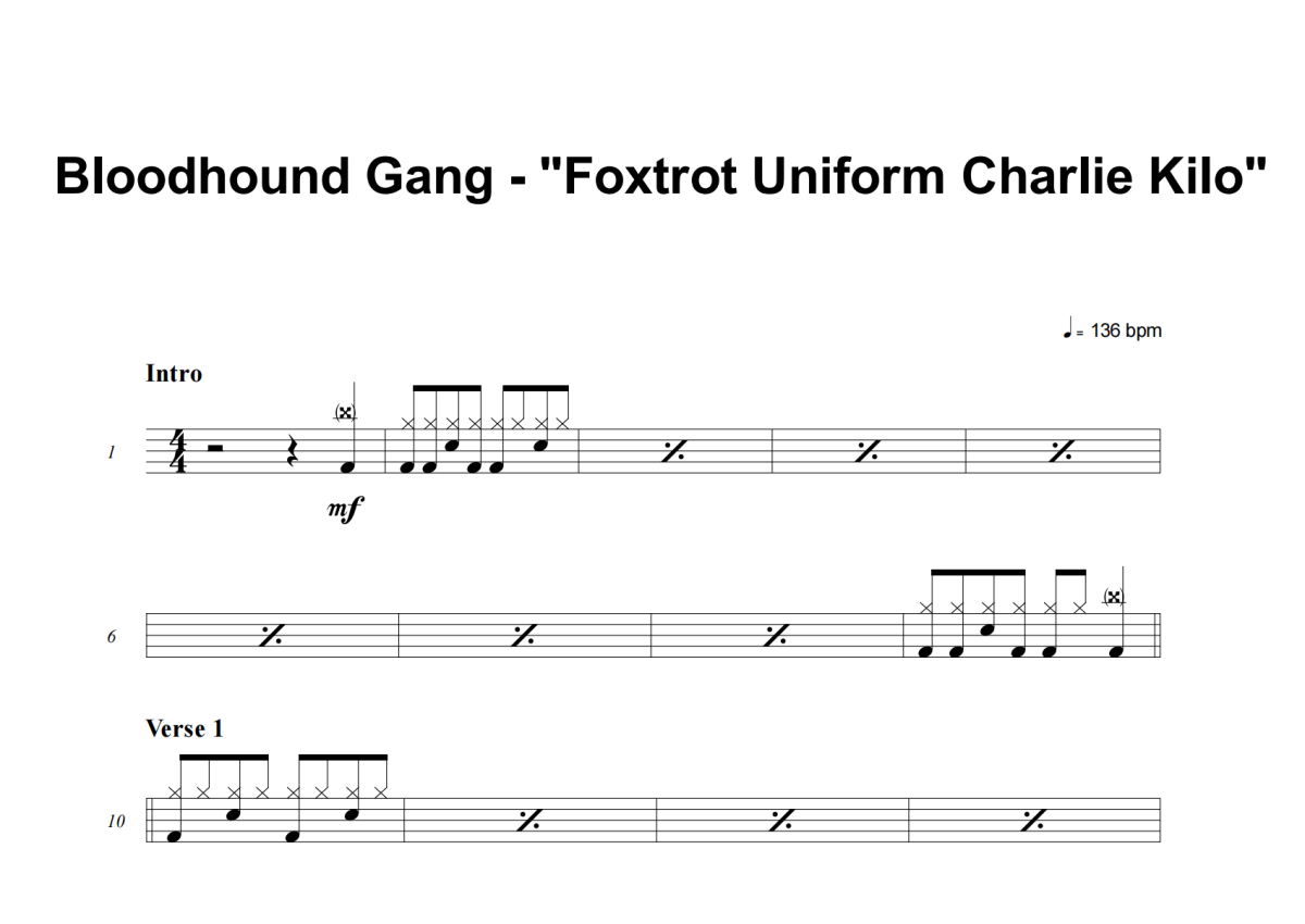 Bloodhound Gang《Foxtrot Uniform Charlie Kilo》架子鼓谱