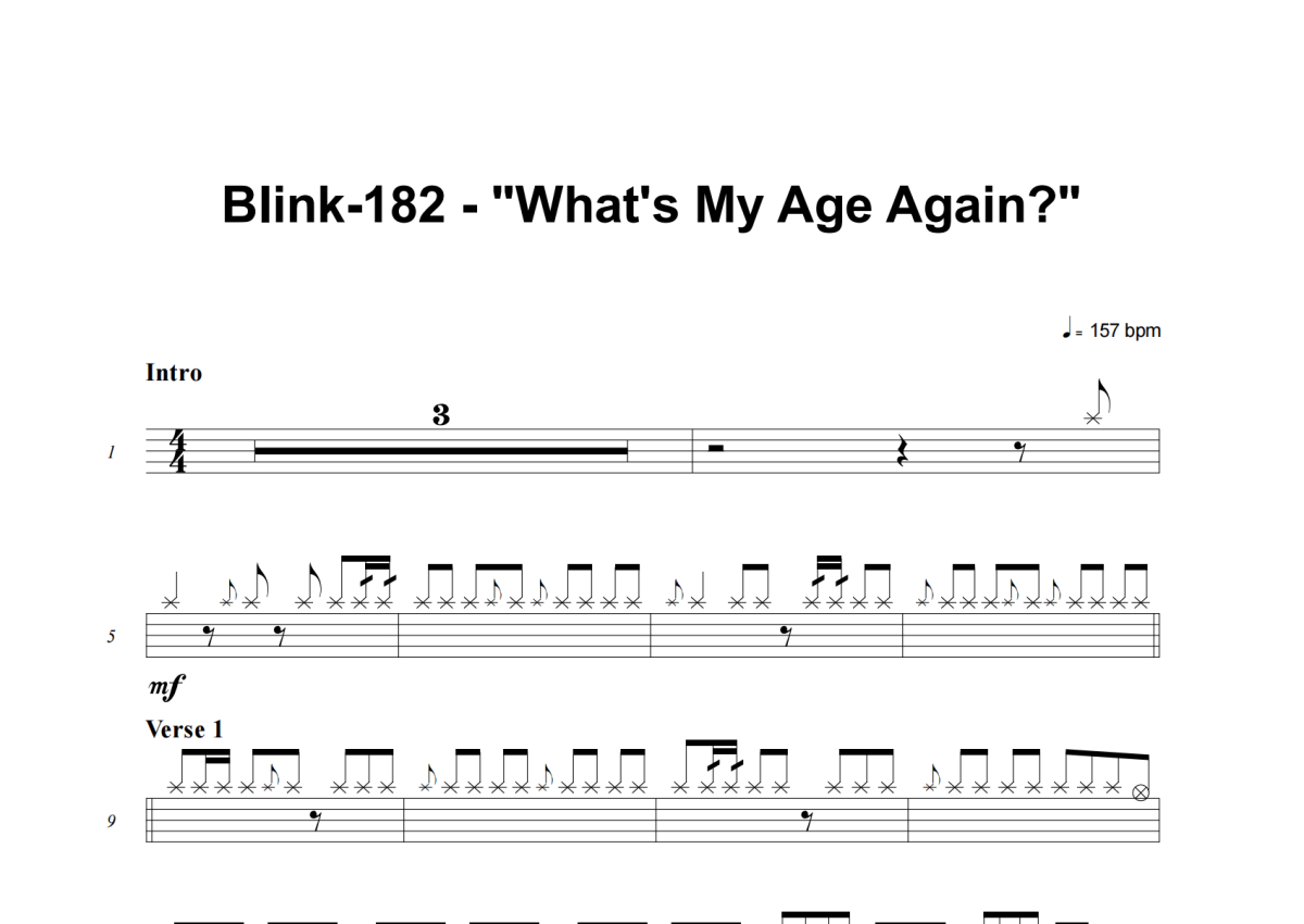 《What's My Age Again》是Blink-182演唱的一首歌曲,这份架子鼓谱共有三张高清图谱,图谱由 @举个例子 编配上传,图谱使用五线谱编配,使用这份What's My Age Again架子鼓谱,你将能够轻松地敲打出这首Blink-182的What's My Age Again,快来尝试吧。