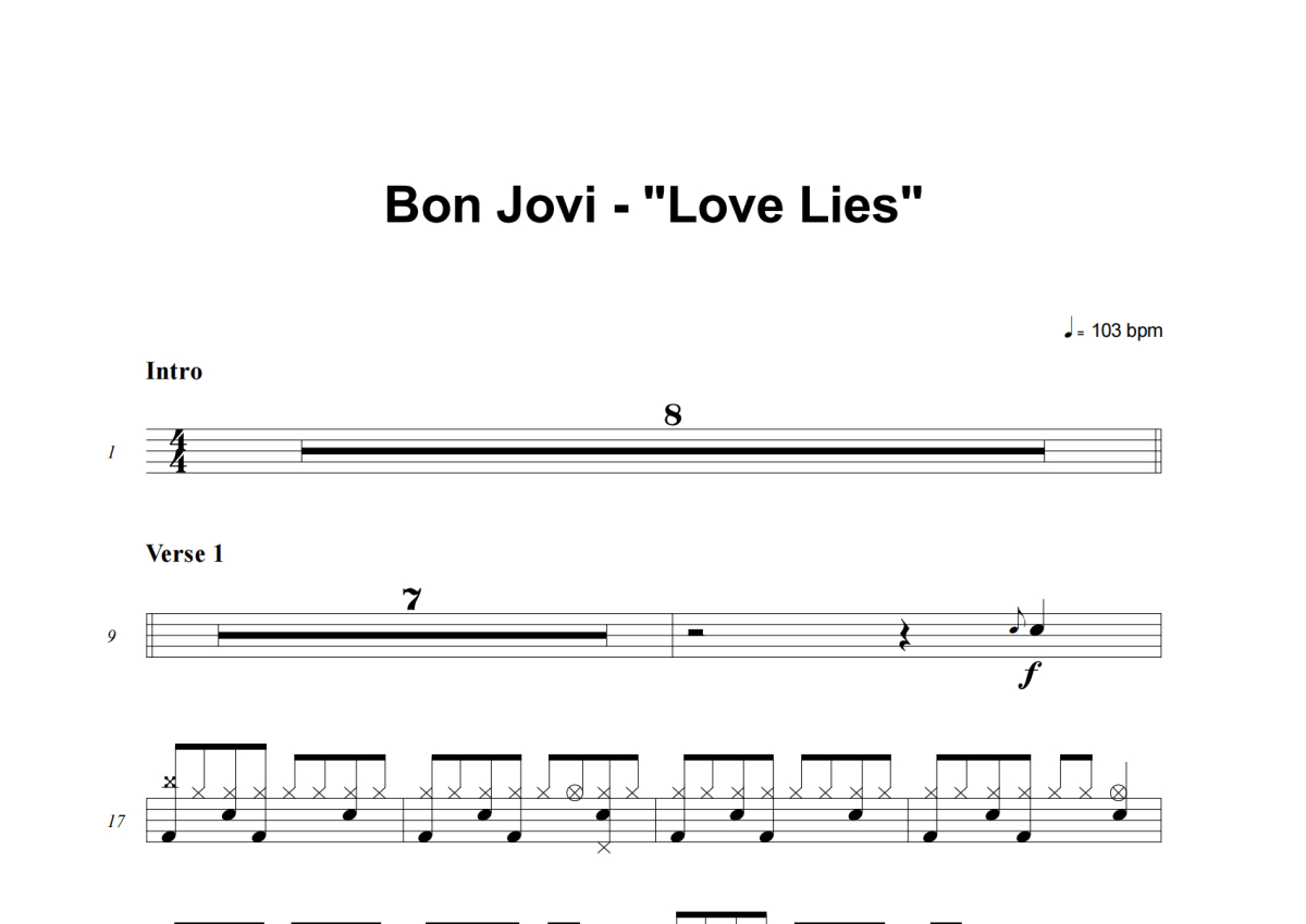 Bon Jovi《Love Lies》架子鼓谱