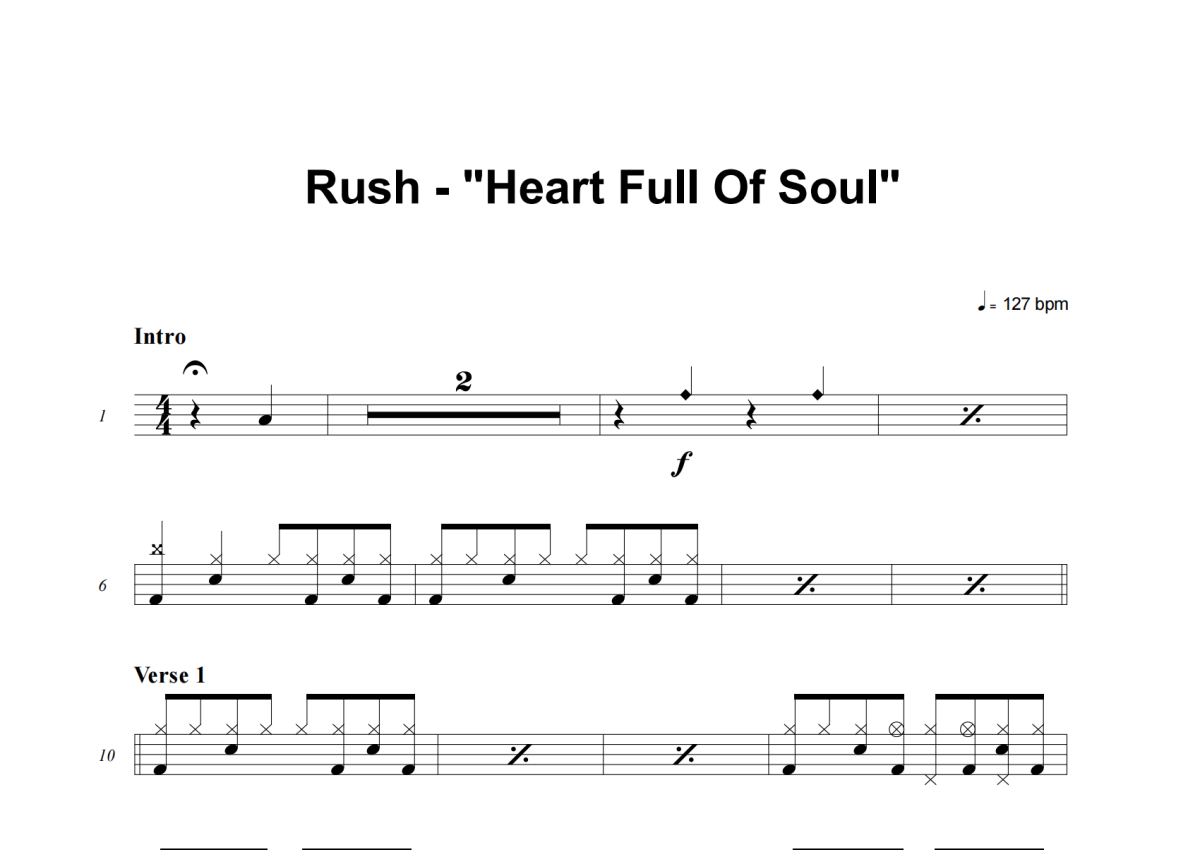 Rush《Heart Full Of Soul》架子鼓谱