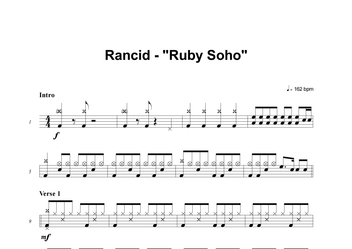 Rancid《Ruby Soho》架子鼓谱