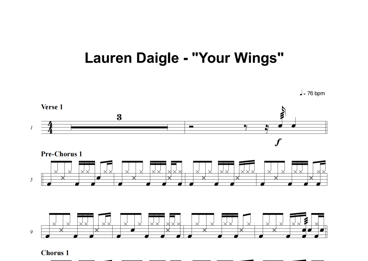 《Your Wings》是Lauren Daigle演唱的一首歌曲,这份架子鼓谱共有两张高清图谱,图谱由 @举个例子 编配上传,图谱使用五线谱编配,使用这份Your Wings架子鼓谱,你将能够轻松地敲打出这首Lauren Daigle的Your Wings,快来尝试吧。