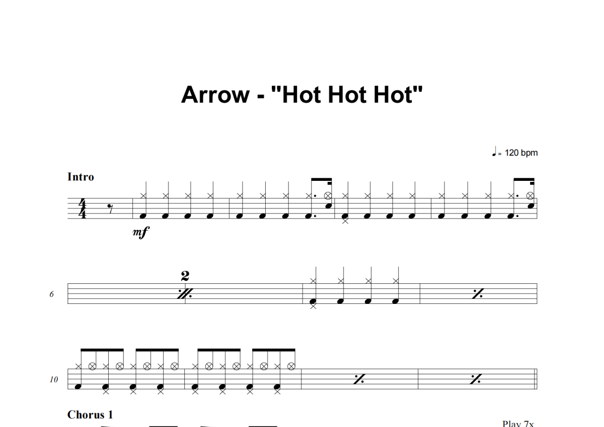 Arrow《Hot Hot Hot》架子鼓谱