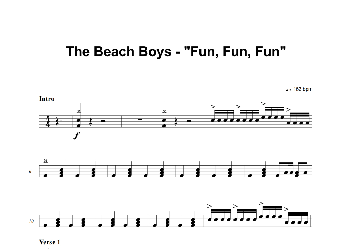 The Beach Boys《Fun, Fun, Fun》架子鼓谱