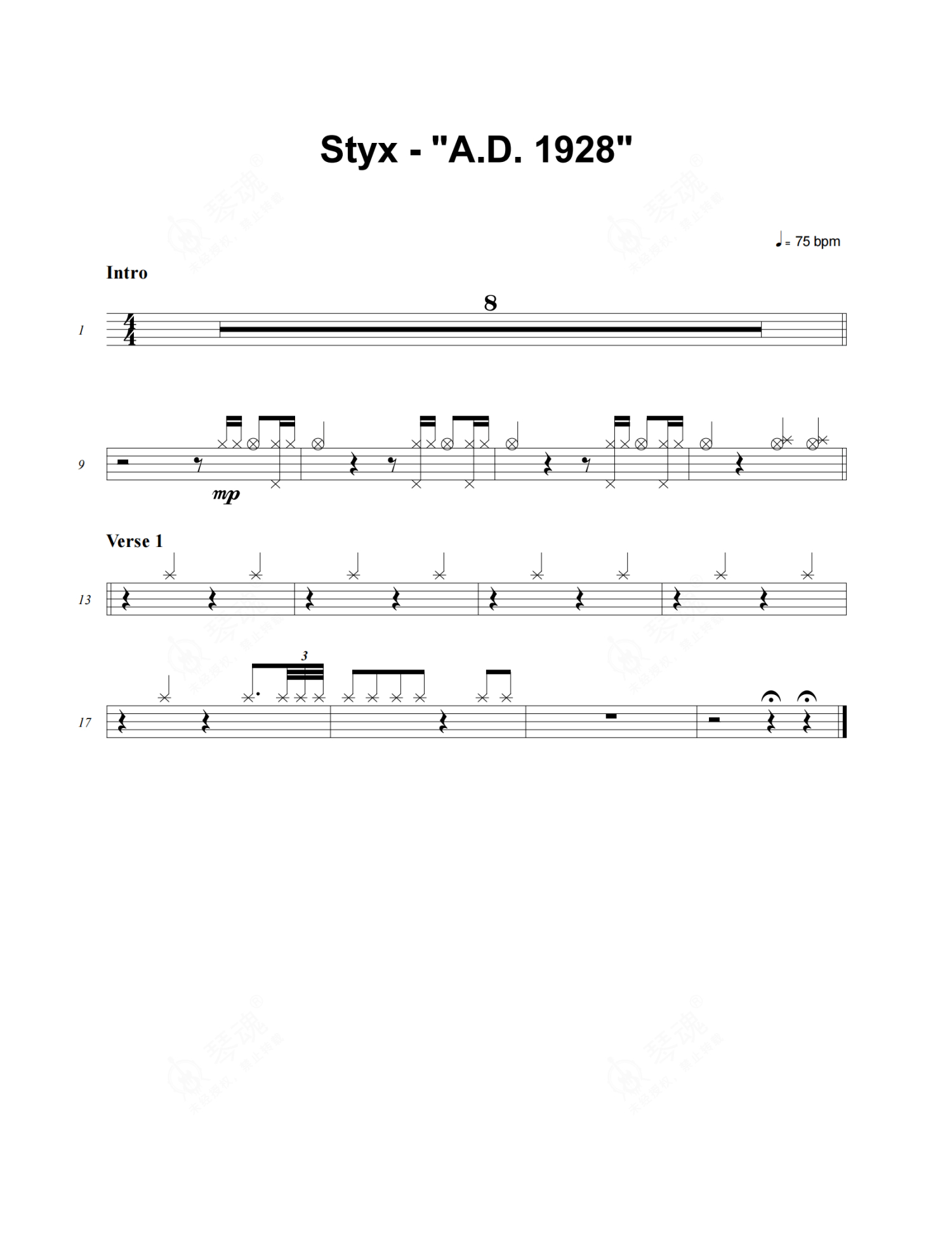 Styx《A.D. 1928》架子鼓谱