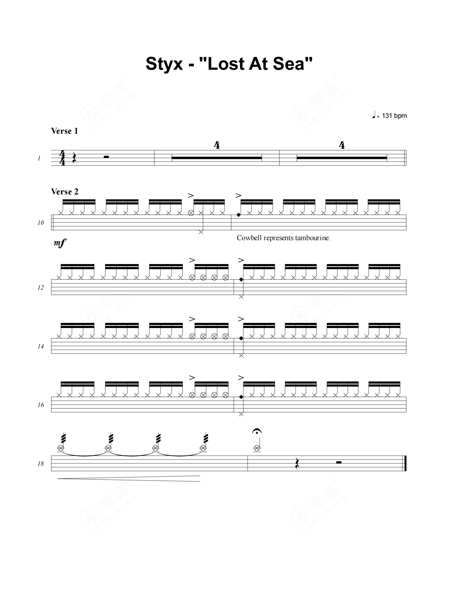 Styx《Lost At Sea》架子鼓谱
